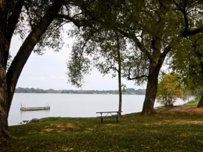 This beach is part of the larger Ennismore Waterfront Park, covering over 50 acres on the shores of Chemong Lake. This area features a floating dock, large picnic area with pavilion, playground, and the Ennismore Heritage Trail.